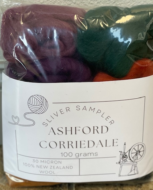 Convenient eight color packs of 30 micron Corriedale sliver pre-packaged in 100 gram bags. Assorted colors.