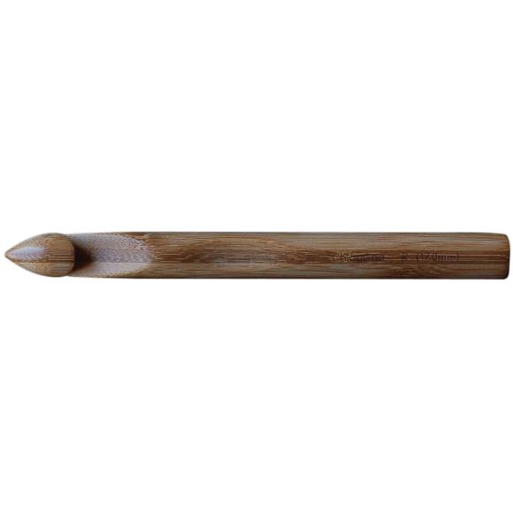 This line features the largest bamboo crochet hook sizes available: E through U. Made of lightweight wood and dark patina, these jumbo hooks have the size permanently laser marked on the handle. Features a perfectly hand-crafted, tapered hook with a precisely placed hold for comfort in the hand.