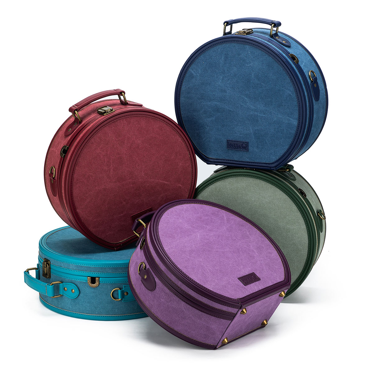 | Design | Buddy Case Sage, Rucksack Mustard, Hat Box Sage, Hat Box Teal, Mesh Tote Teal, Mesh Tote Red, Backpack Mustard, Train Case Plum |