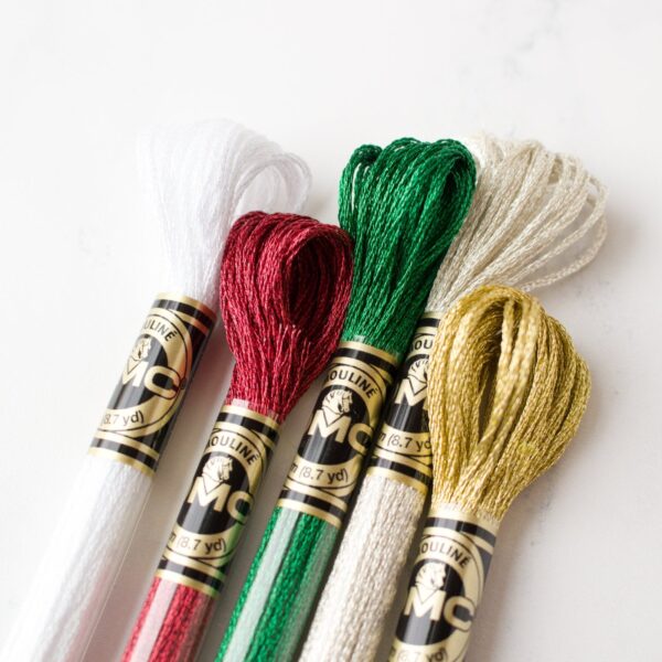 You can add a subtle highlight to your stitching by combining one strand of cotton Floss with one strand of Light Effects. Or for a more vibrant look, you can substitute Light Effects for its matching shade in Cotton Floss. DMC Light Effect Threads will glide through your fabric easier than most other metallic-type threads.