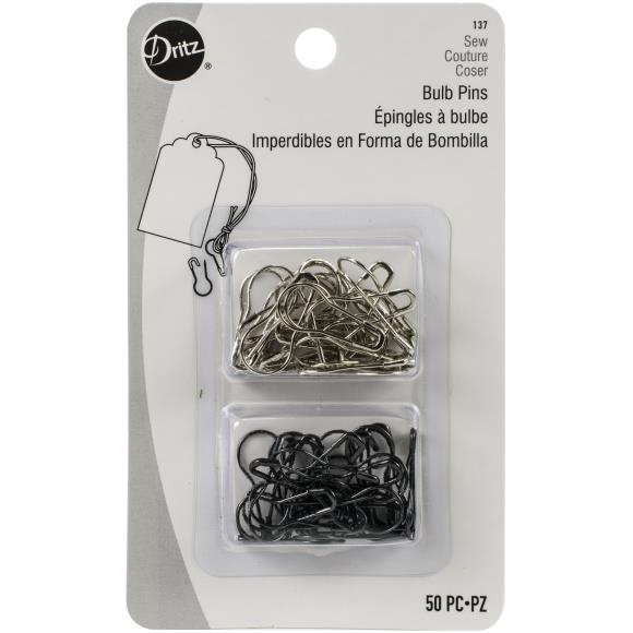 This 4-3/4×2-7/8 inch package contains fifty bulb safety pins in two colors (twenty-five of each color). Imported.