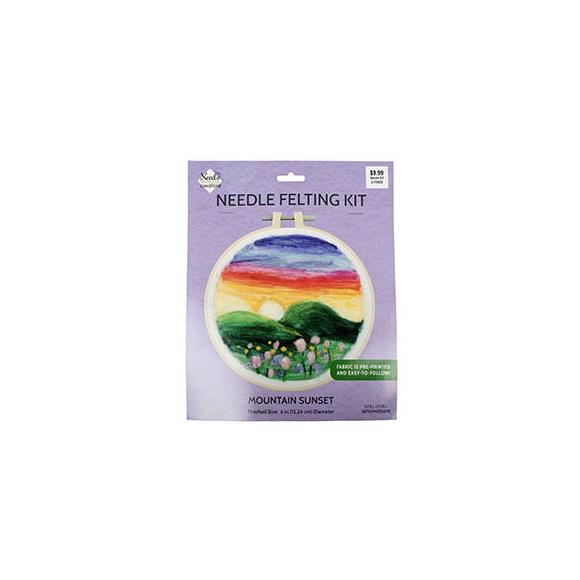 This package includes pre-printed fabric panel, felting material, 6-inch plastic embroidery hoop, felting needle and instructions. Intermediate skill level needed. Available in a variety of styles, each sold separately. Imported.