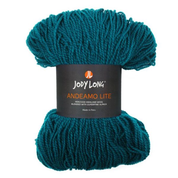Made in Peru, this worsted wool/alpaca blend is the little brother of the popular Andeamo: lightly spun two-ply is a dream to knit with and it will fly off your needles. It is available in bright saturated colors to complement Jody Long’s own gifted pattern support.