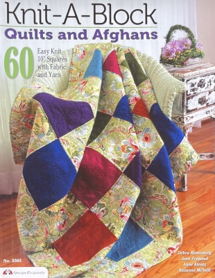60 easy knit 10″ squares with fabric and yarn. 27 page book