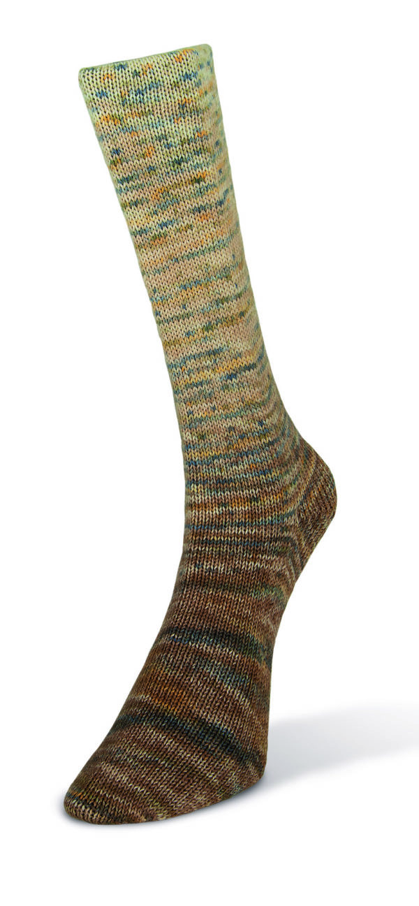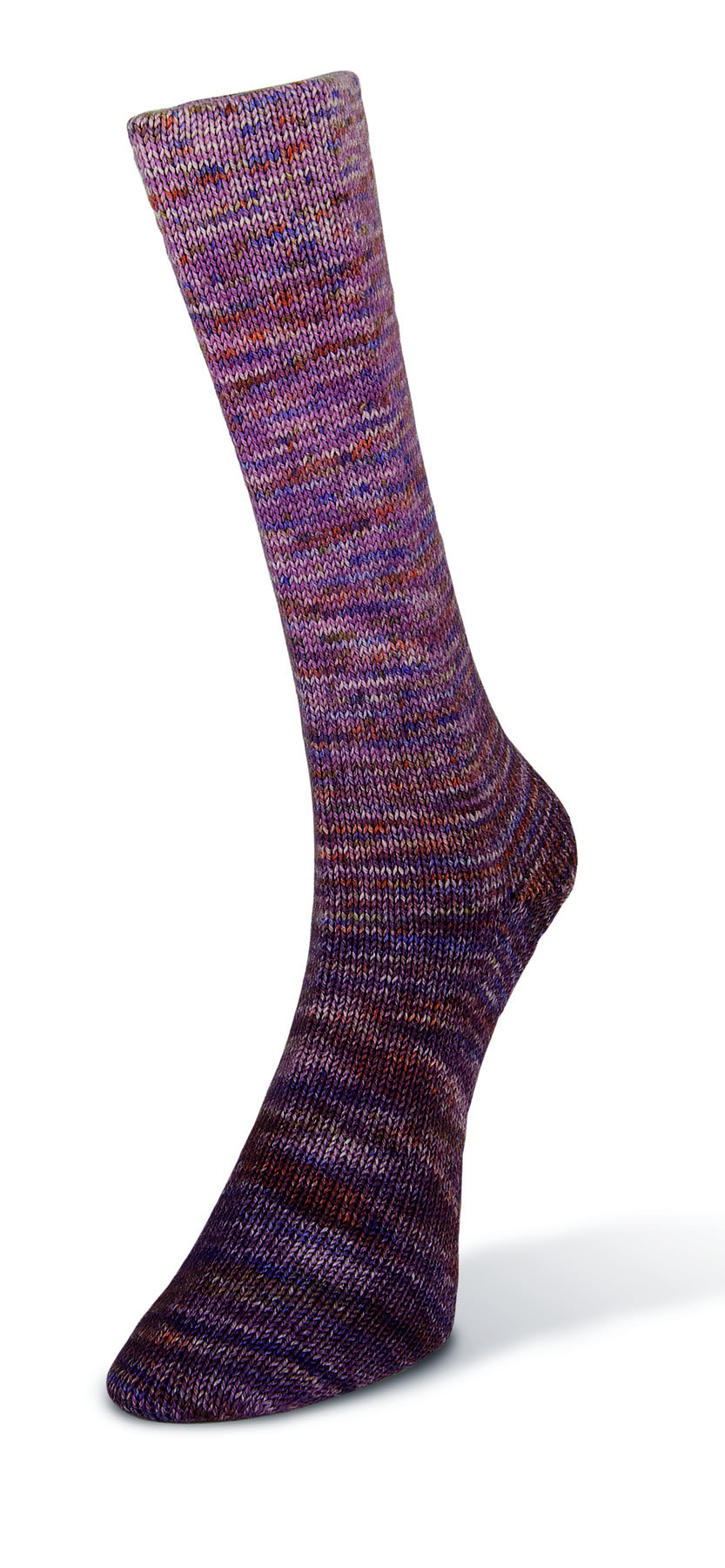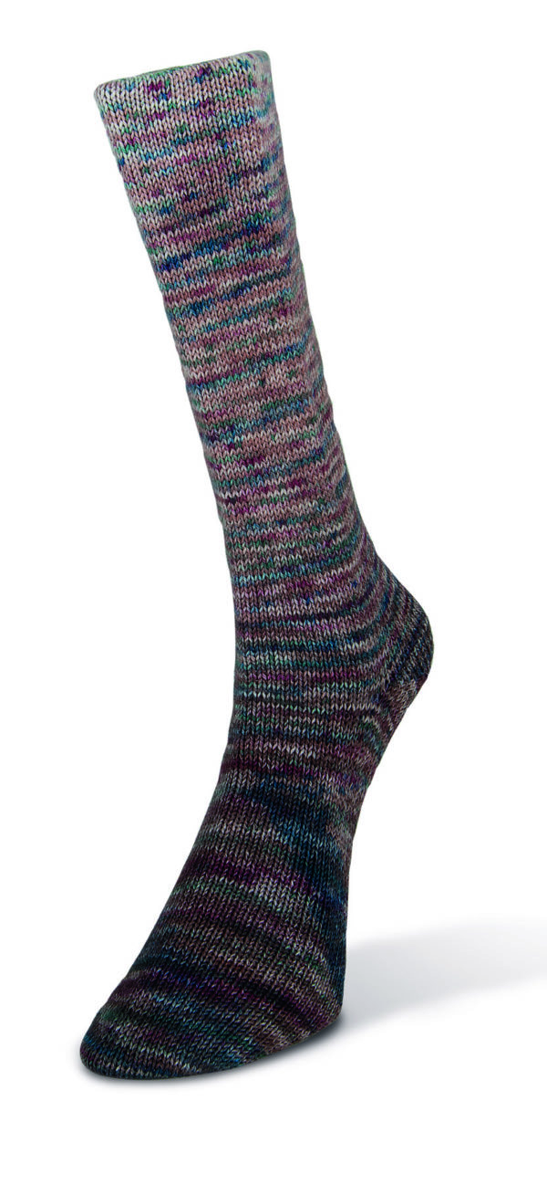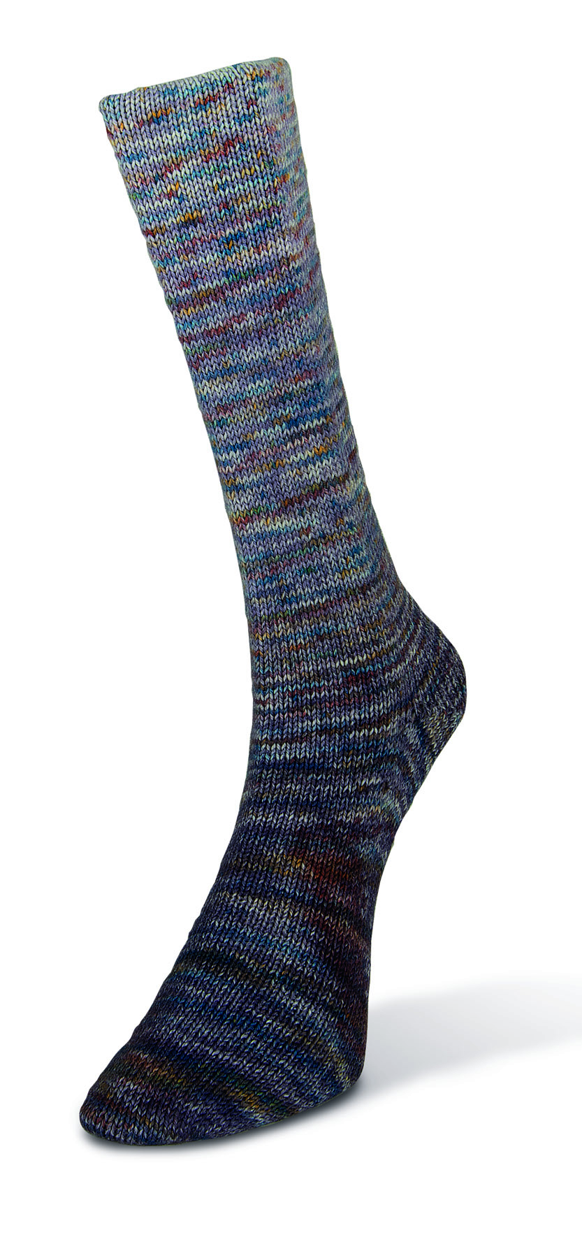 A beautiful yarn where the perfect harmony of shades blends with the softness of a mulesing and chlorine-free wool. The hand-dyed effect is enhanced by small colour nuances reminiscent of tiny impressionist brushstrokes, thus creating a pair of identical socks with a pictorial flair. The yarn is also ideal for sweaters, stoles, shawls and accessories.
