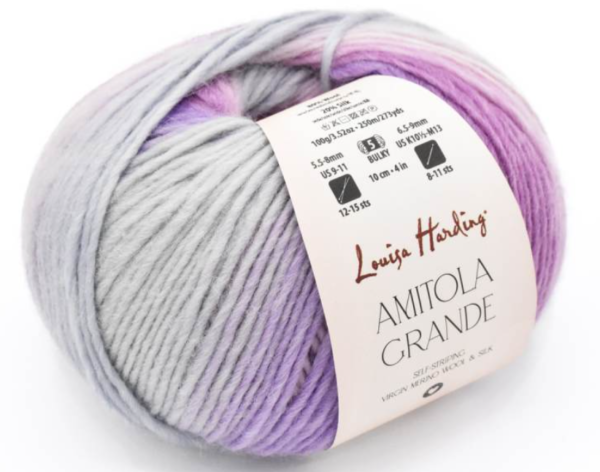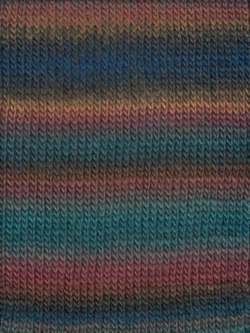 This bulky weight wool/silk blend is available in a range of self-striping colors. The thick-and-thin striping pattern adds extra interest to your finished garment.
