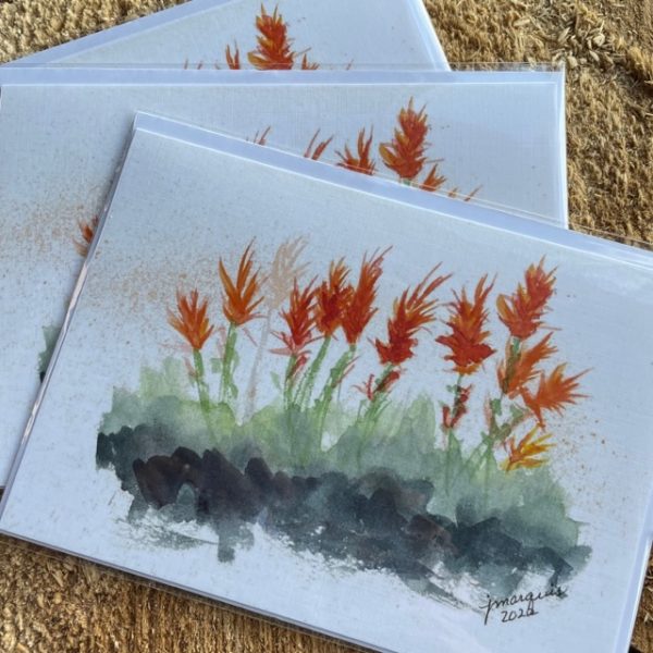 Beautiful prints of handpainted images on a canvas-style cardstock. These cards make a great gift on their own or with a special message from you.