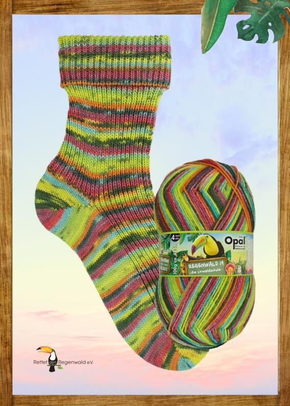 This 6-Ply, DK weight yarn is 50% thicker than Opal’s 4-Ply, making it wonderful for fall, winter, or any mid-weight socks. Also quite nice for sweaters and accessories.
