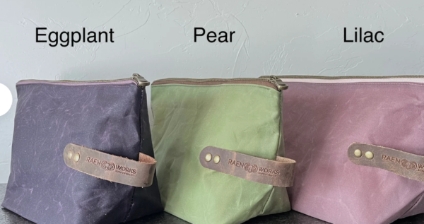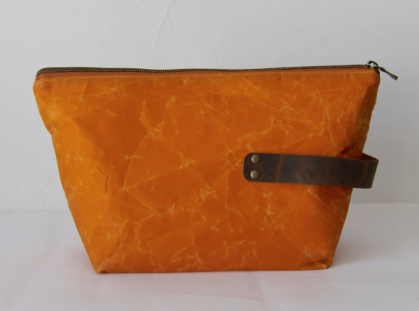 Perfect small project bag for socks, scarf, or mittens! The waxed canvas is pliable yet holds it’s own shape to stand alone. Waxed canvas crinkles as it is used, creating a unique rustic worn-soft look.