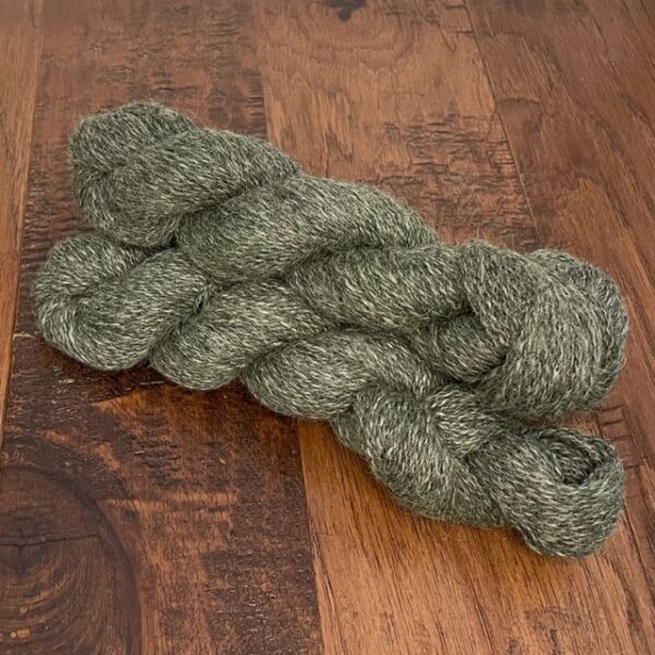 A beautiful yarn from an alpaca farm just 20 minutes from the shop, hand dyed in the studio. Great light, yet warm, fiber to work with!