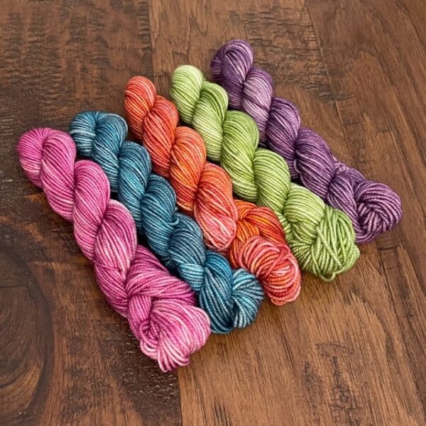 Hand dyed with professional acid dyes to ensure consistency, though colors may vary slightly from hank to hank.