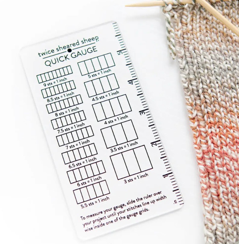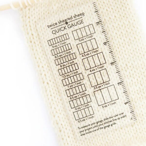 Quickly check your stitch gauge on your project in both knit and crochet. No counting needed! Simply slide the Quick Gauge ruler over your project until the stitches line up inside one of the gauge grids. The matching grid shows your stitch count per inch. Easy Peasy!