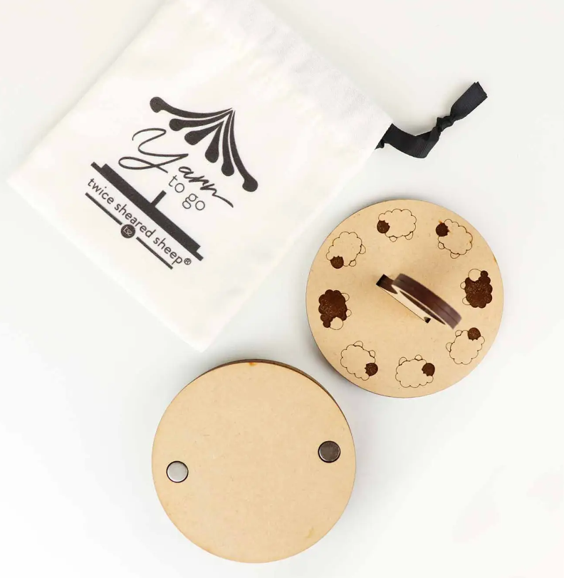 Whether you choose to use the rotating base on a table, or the rotating wrist strap on the go, it can all fold down flat to fit inside your knitting bag for the next time you need it. Includes: