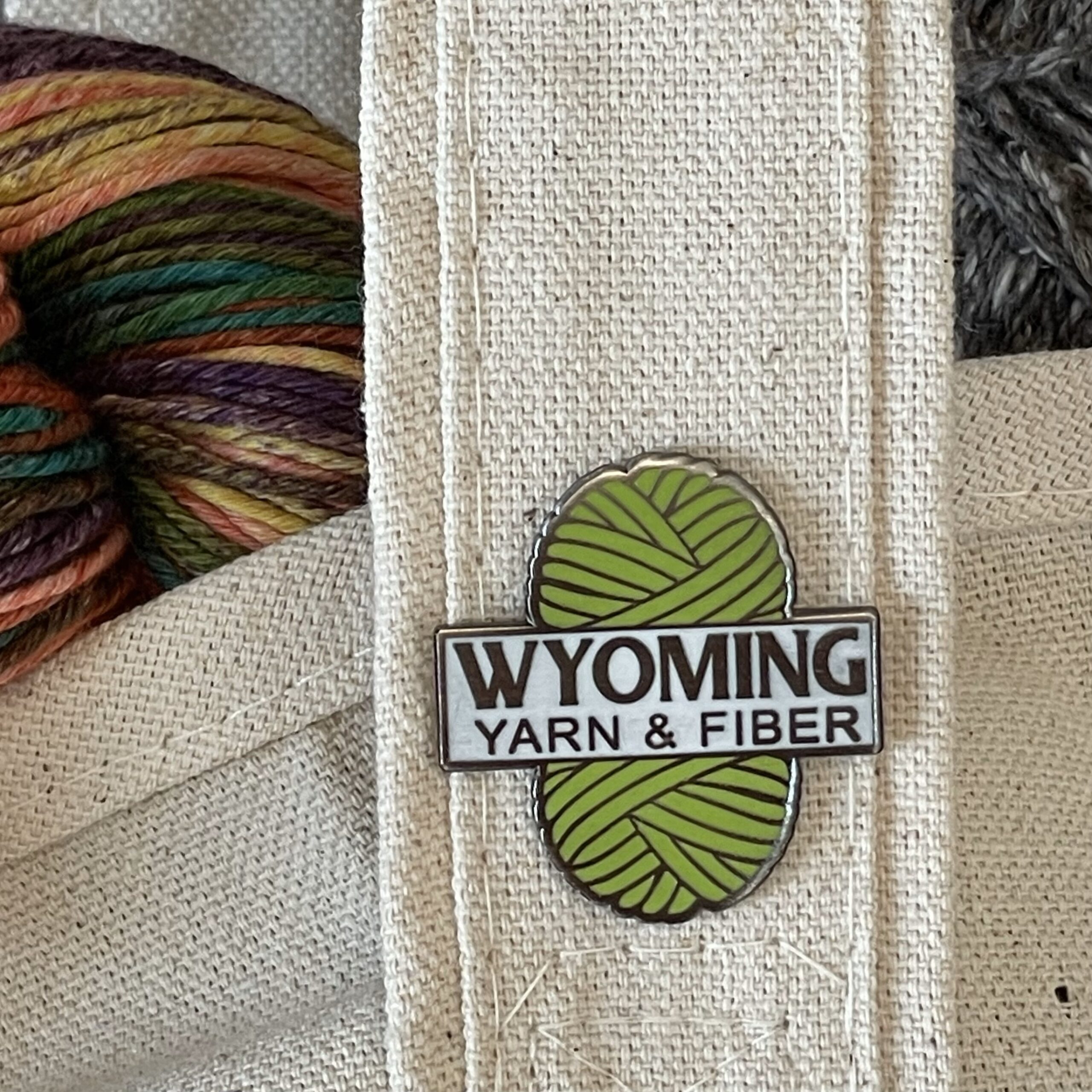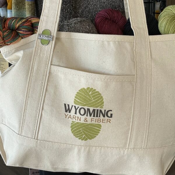 Add a bit of bling to your bag and show off your Wyoming Yarn & Fiber love!